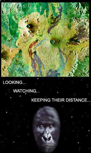 The native's reports were ridiculed as products of imagination, fevers or ritual related hallucinations, very much the same way that the general public responds to modern reports of encounters with other anthropomorphic hominoids such as the mysterious Bigfoot, Sasquatch or the Abominable Snowman. The scientific community announced that, because they had not yet found physical specimen yet, that it simply did not exist. In 1902, Von Beringe, a Belgium army captain, managed to shoot two of these 'impossible" monster-apes. His good hunting skills on Mount Sabinio that day resulted the updating of Earth's biological catalogue. Today, we call these large, wonderful, great apes.....Mountain Gorillas. |